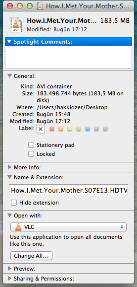 Mac OS X’de avi dosyalarını varsayılan olarak Quicktime programı açıyor, fakat ben VLC ile açmasını istiyorum.