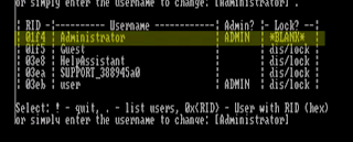 9. İşlem hemen tamamlanacak ve bir önceki menüye dönecek bu menüden parolasını sıfırladığım kullanıcının yanında *BLANK* görmelisiniz.