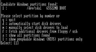 3.  Bilgisayarınız açıldıktan sonra ekranda siyah ekranda bazı yazılar geçecek, durduğunda sizden seçim yapmanızı isteye İngilizce “Please selecet partition by number or” yazan bir menü göreceksiniz. Burada 1‘e basıp Enter’a basın.