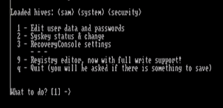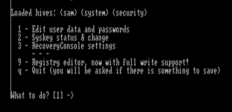 8. Şimdi 1‘e basıp Enter‘a basıp şifreyi sıfırlamak istediğimizi belirtiyoruz.