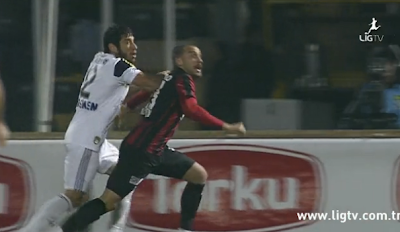Gaziantepspor – Fenerbahçe maçında tartışılan diğer bir karar (verilmeyen karar da karar mıdır?) Egemen’in Cenk’i düşürmesiydi. Pozisyonda seken top ceza sahasının dışına doğru giderken topa Cenk müdahale edemeden Egemen arkasında hızla geliyor fakat sağ eliyle Cenk’e müdahalesi sonucu Cenk yere düşüyor. Hakem her hangi bir karar vermiyor (devam ettiriyor)Pozisyonu yavaş çekim ile seyrettiğinizde sanki vurma değilde pozisyon gereği bir itme gibi görünebilir (öyle bile olsa rakibi itiyor ve düşürüyorsunuz) ama normal olarak izlediğinizde Egemen’in Cenk’e müdahalesi çok açık ve bunun penaltı olduğunu düşünüyorum.