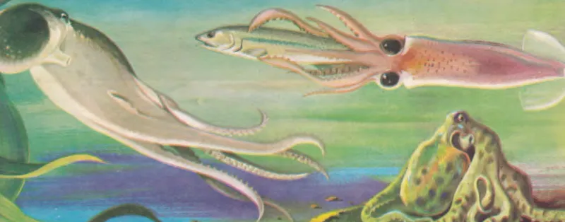 «…Ünlü korsan Kırmızı Joe, suların derinliklerine dalmış batık bir ticaret gemisinin enkazını karıştırıp duruyordu. Denizin dibi kayalıktı. Aradığı şeyi bulabilecek miydi acaba? İşte biraz ilerde koca bir sandık duruyordu. Hazine bunun içinde olmalıydı. Ama Joe’nun sevinci uzun sürmedi. Dev bir ahtapot korkunç dokunaçlarını uzatarak ona doğru ilerliyordu. Hayvan o uzun kollarını dolayıp avım çepçevre yakalıyacağı sırada Joe, kemerinden koca bir bıçak çıkarıp canavarın kollarına saplamıya başladı. Onun bu çabası boşunaydı. Ahtapot, Joe’yu çoktan kolları arasına almış boğarcasına sıkıyordu. Zavallı korsan, hâzineyle birlikte ortadan kayboldu. Serüven romanlarında buna benzer hikâyelerden düzinelere esine raslamışsınızdır. Bunların hiç biri olmıyacak şeyler değildir. Yalnız hikâyemizin kahramanı Joe, ahtapotun anatomisi üzerine biraz daha bilgi sahibi olsaydı böyle feci şekilde ölmeyecekti. Gerçekten de kafadan – ayaklılarda beyin, daha doğrusu sinir sisteminin merkezi tam “iki gözün ortasında” bulunur. Korsan, duygusuz dokunaçlar yerine bıçağını oraya saplasaydı, hayvanı hemen öldürecekti. Kafadan – ayaklıların anatomisi bizi gerçekten ilgilendirir. Bu ilgi günün birinde korsan olup batık gemilerde hazine arayıcılığına çıkmak isteyişimizden değil, mürekkep balığı, loligo gibi bazı türlerin birçok ülkenin sofrasında eksik olmayışından ileri gelmektedir. Hafifçe kızartılıp baharat konduktan sonra sofraya getirilen böyle bir hayvanı tabağımızda evirip çevirerek ince- liyecek olursak kafasının, gövdesinin veya kuyruğunun nerede olduğunu kolay kolay söyleyemeyiz.