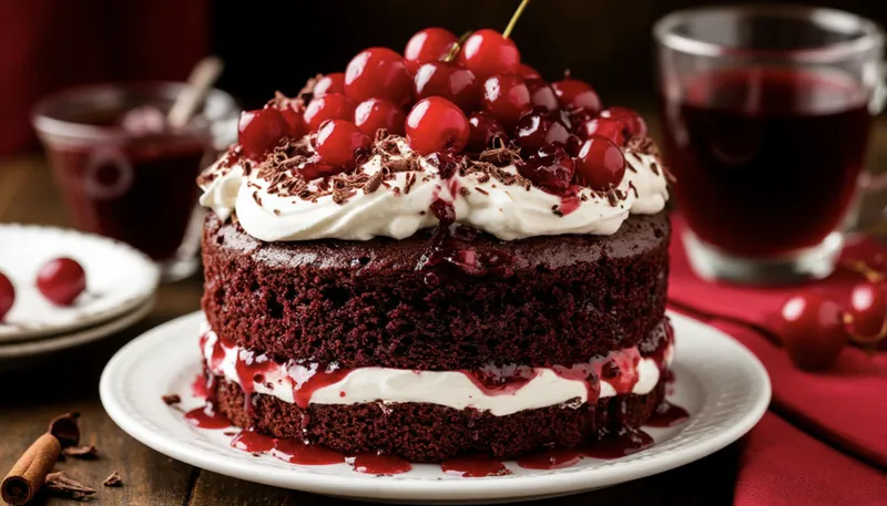 - Püf Noktası: Orijinal tarifi, likörün cömertçe kullanılmasıyla keki nemlendirmesini gerektirir. Üzeri krema, çikolata rendeleri (Kara Orman’ı temsil eder) ve kirazlarla süslenir.