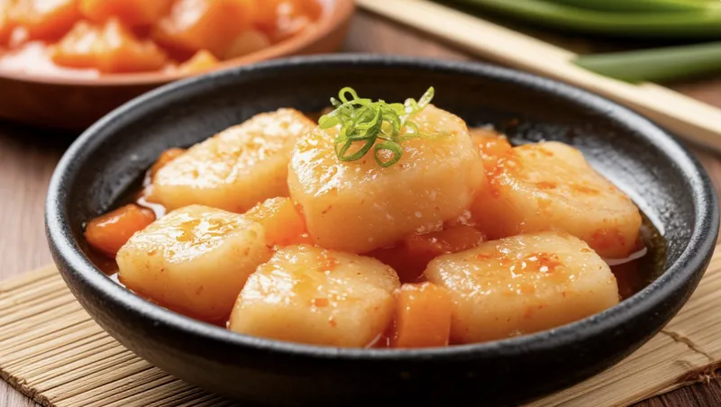 - Nedir? Çubuk şeklinde kesilmiş pirinç keklerinin (garaetteok), Gochujang (acı biber salçası) bazlı tatlı ve baharatlı kalın bir sos içinde, genellikle balık keki (eomuk) ve haşlanmış yumurta ile birlikte kaynatılmasıyla hazırlanır.