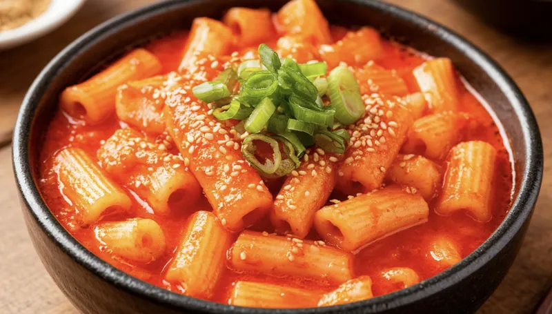 3. Sokakların Kalbi: Tteokbokki (Baharatlı Pirinç Keki)