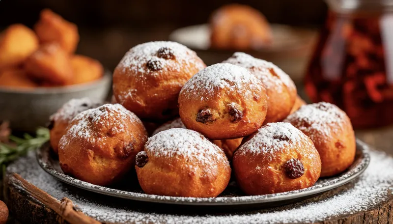 - Püf Noktası: Oliebollen, taze ve sıcak yenmelidir. Üzerine servis edilirken bolca pudra şekeri serpilir.
