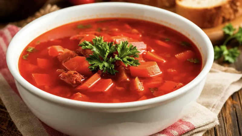 Borş Çorbası (Borscht), aslen Ukrayna kökenli olsa da, Rusya’da ulusal bir yemek haline gelmiş ve Doğu Avrupa’nın gastronomik sembolü olmuştur. Kırmızı rengini pancardan alan bu çorba, Rus mutfağında ana yemek kadar doyurucu bir rol üstlenir.
