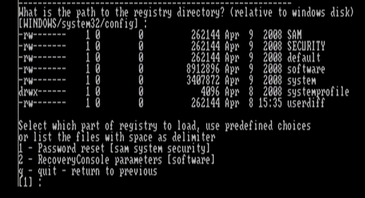 8. Şimdi 1‘e basıp Enter‘a basıp şifreyi sıfırlamak istediğimizi belirtiyoruz.