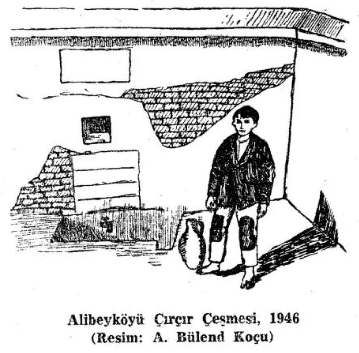 Çeşmenin üstündeki çimen sofada bir dişbudak, iki kavak, üç söğüt ağacı vardır. Yazın mısır mevsiminde bu dere boyu ve bu Çırçır çeşmesi pek hoş olur; zevk ve safâ düşkünü ziyaretçiler eksik olmaz (Ocak, 1946)
