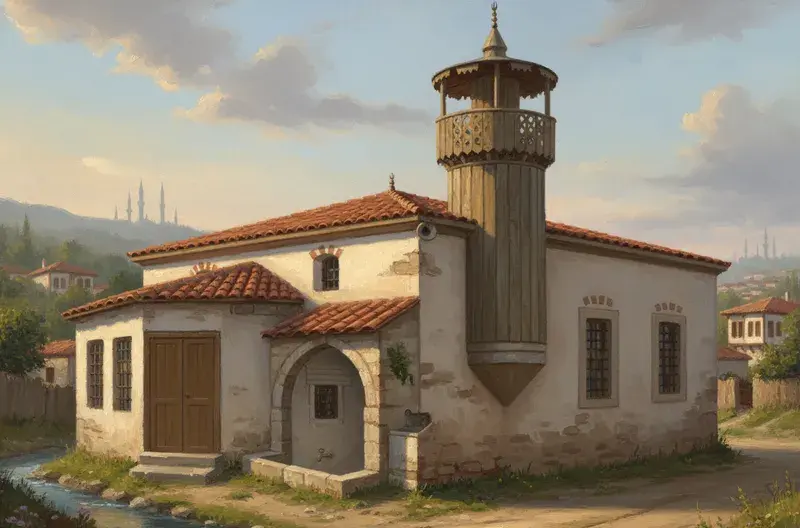 Eyyub tarafından gelindiğine göre, köyün eteğinde cadde kenarında, dört kârgir duvar üstünde kiremitli bir çatıdan ibaret ahşap minareli bir mescittir. Methal kısmı ahşap bir bölme içine alınmıştır ki, bunun da üstü, mescidin ön duvarından indirme kiremitli bir çatı ile örtülmüştür; mescidin kitâbe taşı bu kısmın kapısı üzerine konulmuştur ki, dört beyitlik tarih manzumesi şudur;